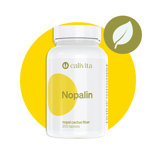 Suplement diety Calivita Nopalin to preparat zawierający wysuszoną łodygę kaktusa Nopal, bogatą w witaminy, składniki mineralne oraz cenny błonnik. Pomaga on utrzymać właściwą masę ciała, kontroluje ilość wydzielanego soku żołądkowego oraz obniża poziom cholesterolu i trójglicerydów we krwi.