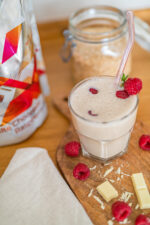 Odżywka białkowo-węglowodanowa o smaku białej czekolady i malin łatwo rozpuszczalna w wodzie, napoju roślinnym, wzbogacona w witaminy, składniki mineralne, inulinę z korzenia cykorii, ekstrakt z jagód acai, enzymy: papainę, bromelainę, będące wsparciem dla osób na diecie redukcyjnej i budującej fit sylwetkę. Koktajl białkowo-węglowodanowy Shake One Pure pomaga zrzucić zbędne kilogramy, wyrzeźbić sylwetkę, zapobiegać utracie masy mięśniowej podczas stosowania diety, zaspokajać ochotę na słodycze oraz wspiera regenerację mięśni po treningu. To doskonale zbilansowane źródło białka pochodzenia roślinnego zarówno dla wegetarian, jak i osób spożywających mięso.
